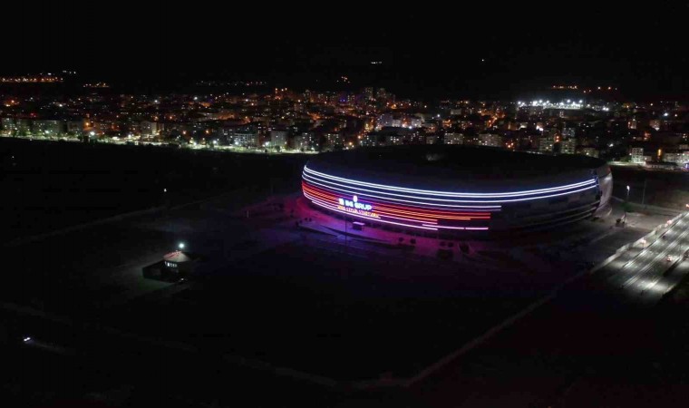 Sivas 4 Eylül Stadyumu’nda, gece aydınlatması ile Cumhuriyet’in 100. yılına özel ışıklandırma yapıldı.