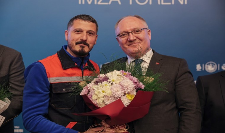 İmza töreninde konuşan Belediye Başkanı Hilmi Bilgin, göreve geldikleri 2019 yılından bu yana işçilerin özlük haklarında ciddi iyileştirmeler yaptıklarını belirterek, “Bizler şehrimize hizmet ederken size güvenerek hizmet ediyoruz. Bu şehir temiz olacak diyoruz, temizlik birimimize güveniyoruz. Bu şehrin parkları, bahçesi güvenli olacak diyoruz, park bahçe birimimize güveniyoruz. Bu şehrin idari birimleri vatandaşla iletişim kuracak diyoruz, idari birimlerde çalışan kardeşlerimize güveniyoruz. Altyapı sorunu olmayacak diyoruz, altyapıda çalışan kardeşlerimize güveniyoruz. Dolayısıyla biz millete yüzü ak, anlı açık çıkıyorsak size güvendiğimizden ve sizin de o güveni boşa çıkarmadığınız içindir. Biz de bunun altında kalmamak adına size daha iyi, daha müreffeh, daha refah içerinde bir hayat yaşatmak adına imkânları en üst seviyeye çıkararak maaşları, özlük haklarını ve sosyal hakları daha da iyileştirmek adına çalıştık, çalışıyoruz. Özbelsan personelimizin taban maaşlarını yüzde 122’lik rekor bir artışla en düşük net 33 bin liraya yükseltiyoruz. Yıllık ikramiyeleri de 30 yevmiyeden 40’a çıkarıyoruz, hayırlı uğurlu olsun” şeklinde konuştu.