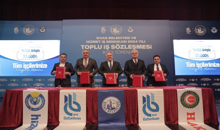 Sivas Belediyesi Özbelsan işçilerini kapsayan toplu iş sözleşmesi imzalayarak en düşük işçi maaşını yüzde 122 artışla 33 bin TL’ye yükseltti.