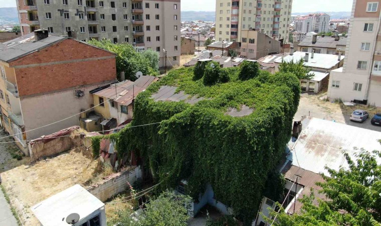Sivas’ta bulunan sarmaşık kaplı ev, yeşillikler içinde adeta bir adayı andırıyor.