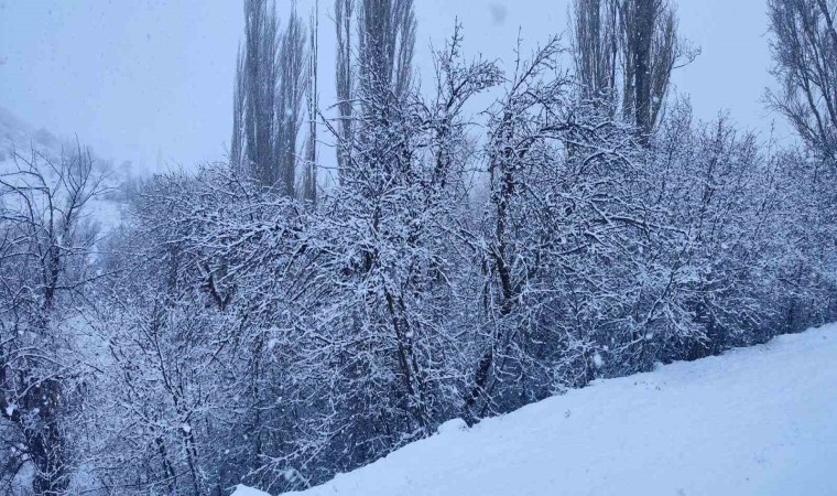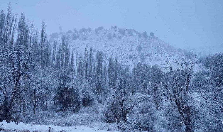 Sivas’ın Şarkışla ilçesinde yüksek kesimlerinde etkili olan kar yağışı etrafı beyaza büründü.