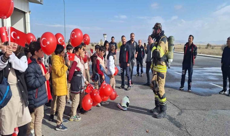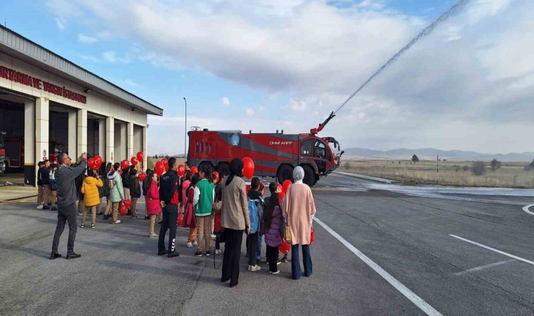 Öğrenciler, Türk bayrakları ile uçaktan inen yolcuları karşılayarak ilk defa bir uçağın içini gezme şansı buldu. Minik öğrenciler Havalimanında bulunan terminal, kule, ARFF, garaj gibi alanları ziyaret etti.