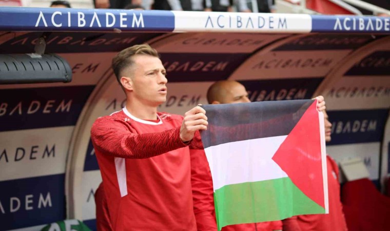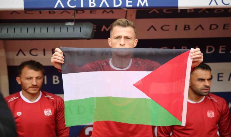 Diğer yandan yedek kulübesinde yer alan Sivassporlu futbolcu Hakan Arslan ise, seremoni de Filistin bayrağı açtı.