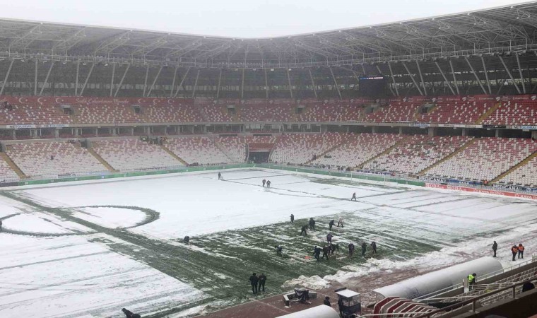 Öte yandan Sivas’ta yoğun kar yağışı devam ederken stadyumda ise kar temizleme çalışmaları sürüyor.