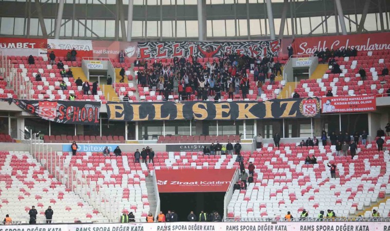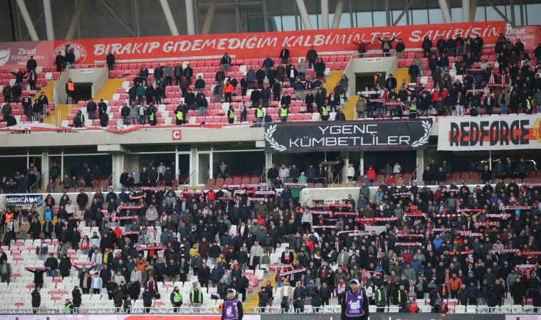 Sivasspor’un Trendyol Süper Lig’in 16. hafta erteleme maçında Galatasaray ile oynadığı maçı tribünde az sayıda kırmızı-beyazlı taraftar takip etti. Yaklaşık 8 bin kişi tribünlerde takımını desteklerken, büyük boşluklar göze çarptı. Az sayıdaki taraftar, maç öncesi futbolcuları tribünlere çağırıp yumruk şov yaptırırken, tezahüratlarla takımlarına destek oldu.