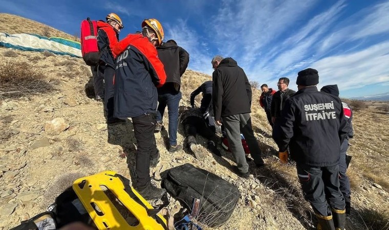 Sivas’ın Suşehri ilçesine bağlı Çakırlı köyü yakınlarında yamaç paraşütü yaparken ters rüzgara kapılarak 20 metreden yere çakılan paraşütçü yaralandı.