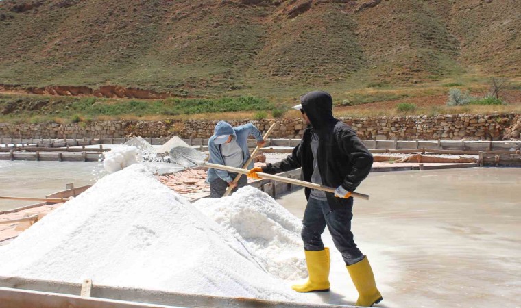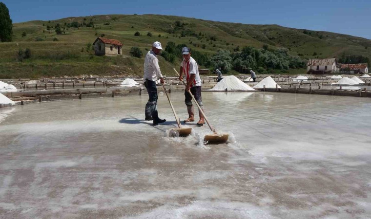 Sivas’ta insan vücudu için gerekli 84 minareli içinde bulunduran ve 200 yıldır geleneksel yöntemlerle üretilen tuzun hasadı başladı.
