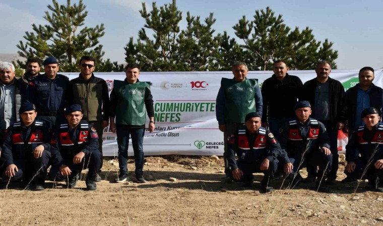 Gürün Kaymakamı Abdullah Sarı, Belediye Başkanı Nami Çiftçi ve kurum amirlerinin de katıldığı etkinlikle Gökpınar yolu üzerinde belirlenen bölgede Cumhuriyetin 100’üncü Yıl Ormanı oluşturularak fidanlar toprakla buluşturuldu.