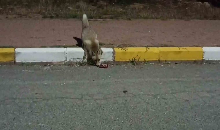 Sivas’ta doğada yiyecek bulmakta zorlanan tilki üniversitenin kampüsüne inerek bulduğu keki yedi. O anlar bir öğrencinin cep telefonu kamerasına yansıdı.