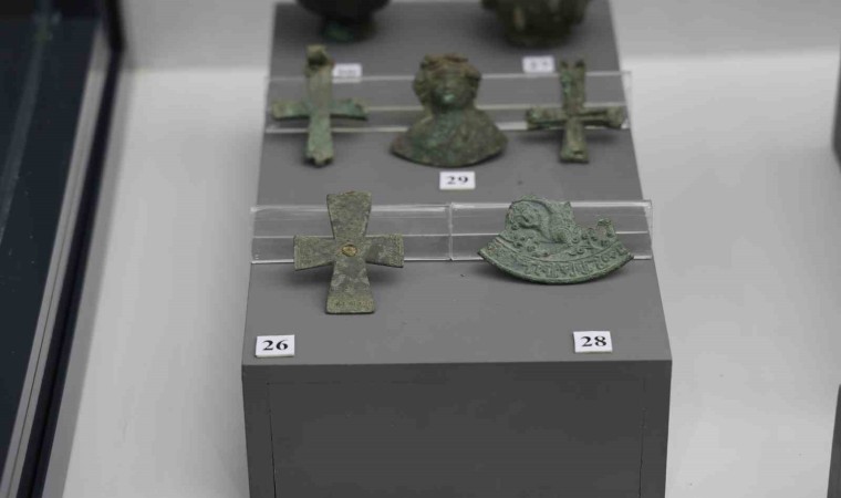 Kazıda birçok eser bulunduğunu söyleyen Alkan, “Güzel buluntular elde ettik Eski Tunç Çağı’na ait. Bu ekmek mührü, onların özel günleri, yortularının olduğu dini törenlerde, o dini törenlere özgü yapılan, genel vaftiz töreni gibi ya da işte Paskalya Bayramı gibi özel günlerinde yenen ekmeklere vurulan mühürdür. Bu pişmiş topraktan yapılmış, üzerinde hac işareti var. Bu da bulduğumuz ünik örneklerden birisi. Biraz teşhir ve tanzimimizi güncelledik. Binamız tarihi bir bina olduğu için
