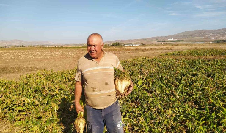 Şeker pancarı hasadına başladıklarını belirten çiftçi Kemal Pekyürek, yağışlar sayesinde verimin iyi olduğunu belirtti.