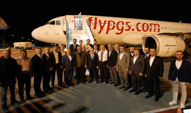 İzmir’den Sivas’a uzun zamanın ardından ilk direkt uçuşun gerçekleştirildiği Pegasus firmasına ait uçak, gece yarısı iniş yaptığı Sivas Nuri Demirağ Havalimanı’nda törenle karşılandı.