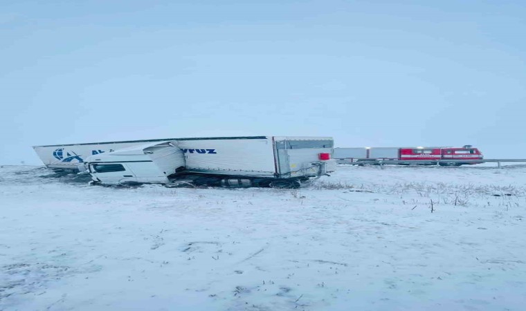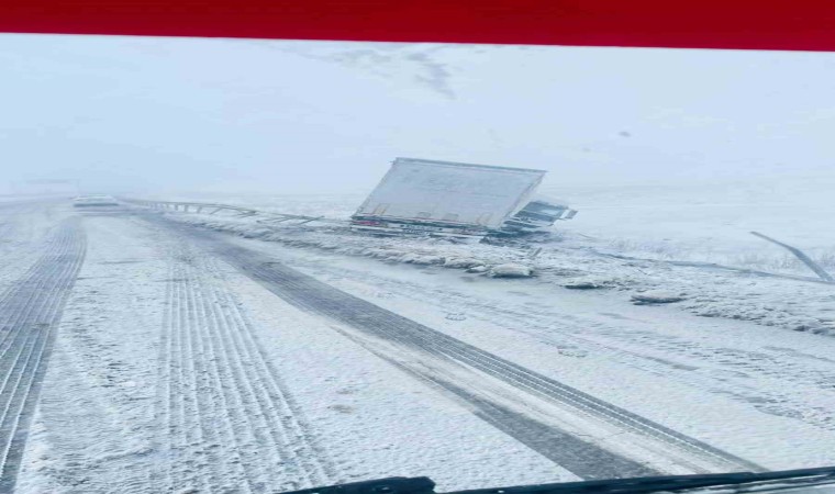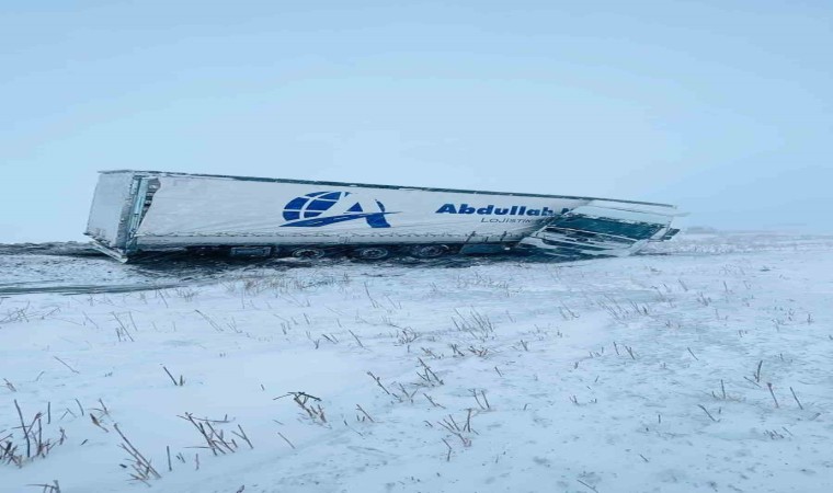 Sivas’ın Şarkışla ilçesinde yoğun kar ve fırtına nedeniyle virajı alamayan tır yoldan çıktı. Kazad tır sürücüsü yaraladı.