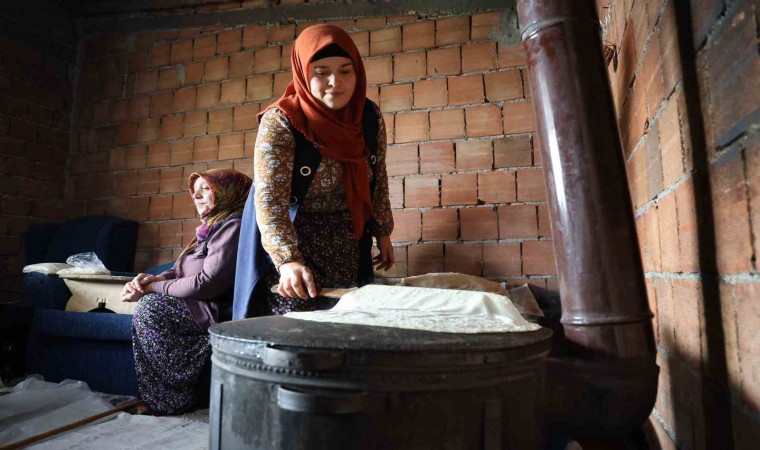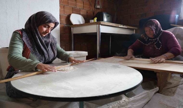 Kışın tüketmek üzere yufka yapan Emine Kel, “Kışlık yufka yapıyoruz. Yufka, sacda pişirdiğimiz bir ekmek. Fırın ekmeği de yapıyoruz, bunu da yapıyoruz. Hobi olarak yaptık bugün. Börek olarak da kullanıyoruz. Yağlıyoruz, sigara böreği olarak da kullanıyoruz. 3 kişi çalışıyoruz, en az 100’er tane yapıyoruz” dedi.