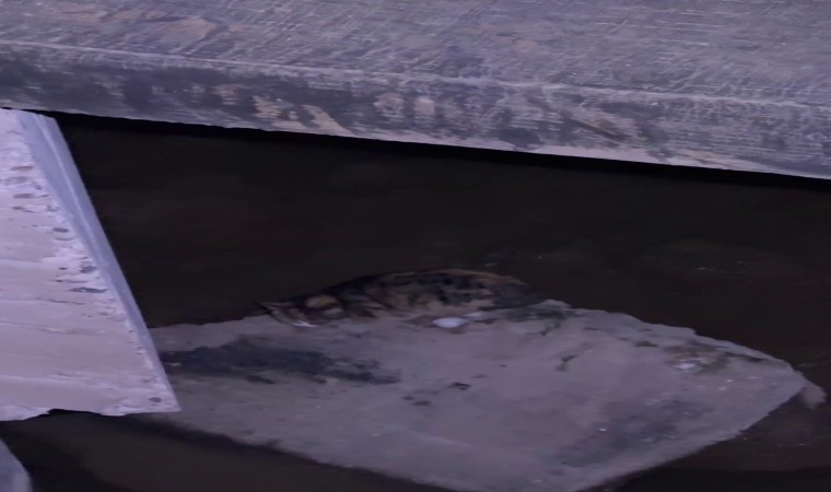 Sivas’ta Kızılırmak üzerindeki bir köprünün ayağında mahsur kalan kedi, itfaiye ekiplerinin başarılı çalışmasıyla kurtarıldı.