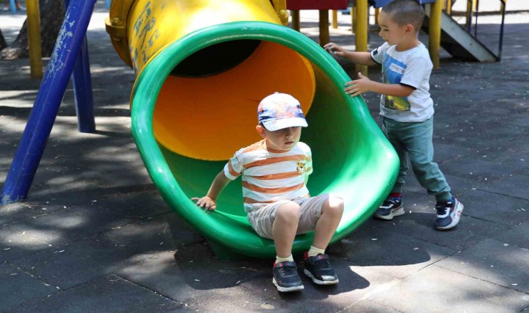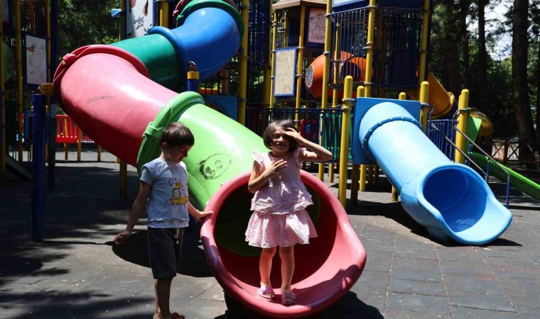 Sivas’ta çocuğuyla kaydıraktan kayarken ayakkabısının topuğu kaydırağın birleşim noktasına sıkışarak mahsur kalan kadını mahalle muhtarı kurtardı.