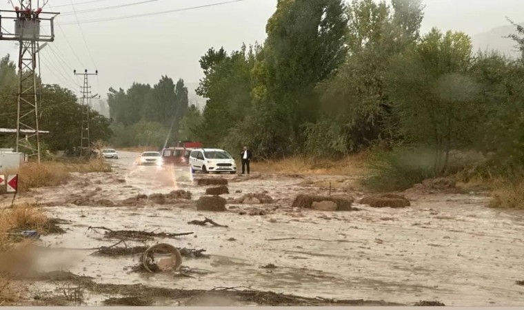 Sivas’ın Gemerek ilçesinde ve Çepni kasabasında etkili olan sağanak yağış, hayatı olumsuz etkiledi. Çepni yolunda oluşan sel bir süreliğine sürücülere geçit vermedi.