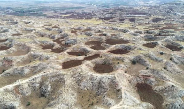 Bölge genelinin tahıl tarımına uygun olduğunu anlatan Dr. Kartal, "Bu kayaçlar, bir süre sonra kırmızı toprak olur. Sivas, Çankırı ve Ankara dolaylarında bu kayaçlar, dolinler içerisinde eriyerek, çok fazla birikmiş toprak unsurları meydana getirir. Bu unsurları, insanlar tarımsal faaliyetlerinde kullanabiliyor. Buradaki obruklardaki tarlaları halk bilinçli olarak ekmiyor. Çiftçi 'Buralar verimli midir' diye düşünmüyor. Sadece burası tahıl tarımına uygun sahalardır. Bu yüzden insanlar, tahıl tarımını dededen ya da babadan bir şekilde deneyimlemiş ve bu şekilde devam etmiş. Bu şekilde tarım sahasına dönüşmüş. Bunun dışında burası, jips adını verdiğimiz kayacın çözülmesiyle oluşmuş, çözülme dolinleri olarak biliniyor. Bunlar da kendi içerisinde irili, ufaklıdır. Geniş ya da küçük parseller içerisinde insanlar, burada tarımını yapabiliyor" diye konuştu. (DHA)