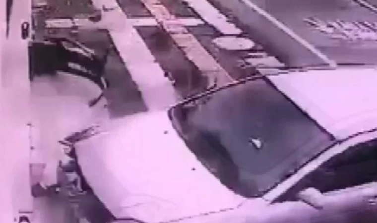 Sivas’ta otomobilin iş yerine çarptığı kaza kamerada