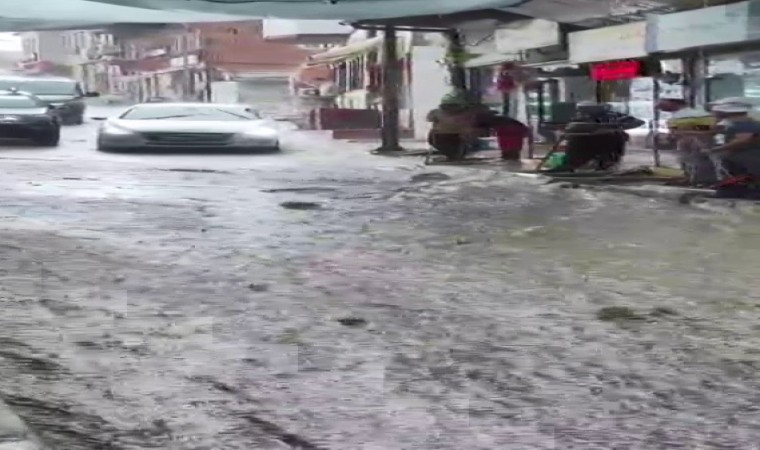Sivas’ın Divriği ilçesinde sağanak sonrası cadde ve sokaklar göle dönerken, bir evi ve iş yerini de su bastı.