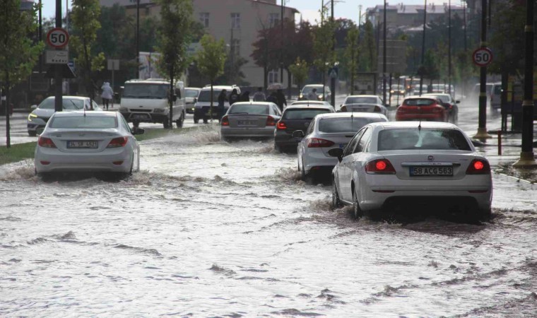 Sivas’ta öğleden sonra başlayan sağanak yağış hayatı olumsuz etkiledi. Cadde ve sokaklar göle dönerken, araçlar ilerlemekte güçlük çekti.