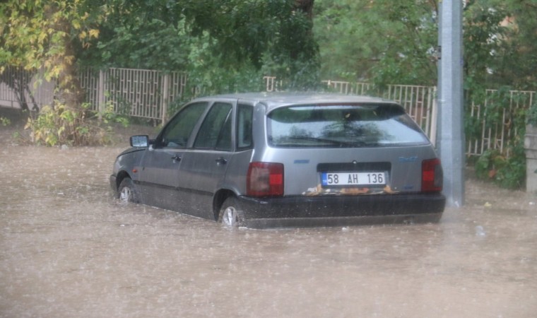 Sivas’ta etkili olan sağanak yağmur hayatı olumsuz etkiledi, araçların bir kısmı sular altında kaldı.