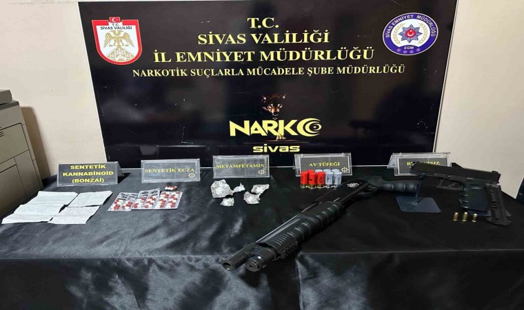Sivas İl Emniyet Müdürlüğü Narkotik Suçlarla Şube Müdürlüğü ekiplerince uyuşturucu operasyonu gerçekleştirildi. Geçtiğimiz günlerde yürütülen çalışmalarda yakalanan şahıslar üzerinde arama yapıldı. Yapılan aramada; 46,03 gram gelen metamfetamin maddesi, 1 adet hassas terazi, 34 adet sentetik ecza hap, kağıda emdirilmiş vaziyette yaklaşık bin 450 içimlik sentetik kannabinoid maddesi, 5 adet ruhsatsız tabanca ve 4 şarjör, 3 adet fişek, 1 adet av tüfeği ve 9 adet av tüfeği fişeği ele geçirildi. Yakalanan 6 kişiye kullanmak için uyuşturucu veya uyarıcı madde satın alma kabul etme veya bulundurma suçundan işlem yapıldı. 3 şahıs ise uyuşturucu veya uyarıcı madde imal ve ticareti suçu ve kullanmak için uyuşturucu veya uyarıcı madde satın alma, kabul etme veya bulundurma suçu çerçevesinde işlem yapılarak adliyeye sevk edildi. Adliyeye sevk edilen 3 kişi çıkarıldığı mahkemece tutuklanarak cezaevine gönderildi.