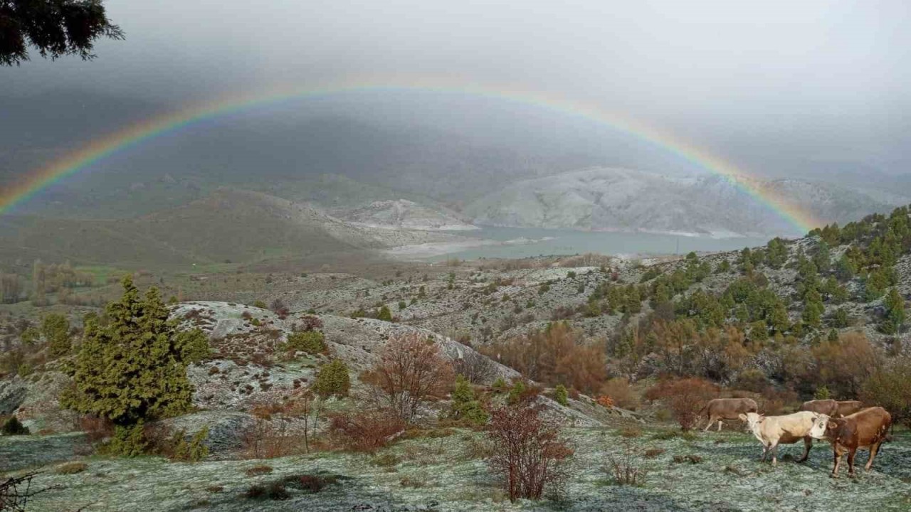 SİVAS’IN HAFİK İLÇESİNDEN YAĞMURUN ARDINDAN ORTAYA ÇIKAN GÖKKUŞAĞI GÖRSEL ŞÖLEN SUNDU