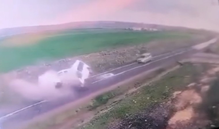 Görüntülerde kontrolden çıkan minibüs, karşı taraftan gelen hafif araçla kafa kafaya çarpıştığı görülürken, hafif ticari aracı takip eden başka ticari araç da kafa kafaya çarpışan araçlara çarparak duruyor. Görüntülerde minibüse ait motorun çarpmanın etkisiyle metrelerce uzağa fırladığı da görülüyor.