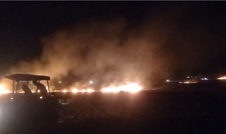 Şanlıurfa’nın Siverek ilçesinde arazide çıkan yangın, itfaiye ekipleri ve köylülerin traktörlerle müdahalesiyle söndürüldü.