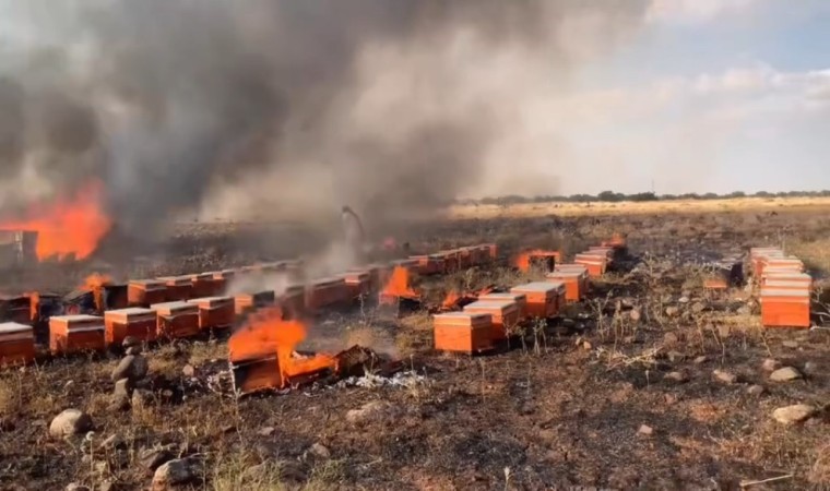 Şanlıurfa’nın Siverek ilçesinde meydana gelen arazi yangınında, yüzlerce arı kovanı içindeki arılarla birlikte yanarak kül oldu.
