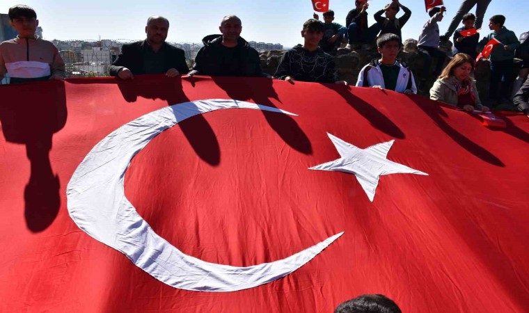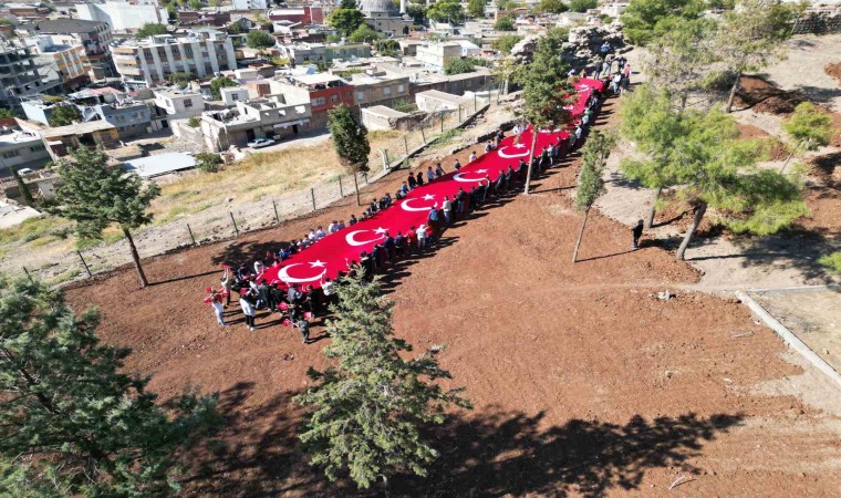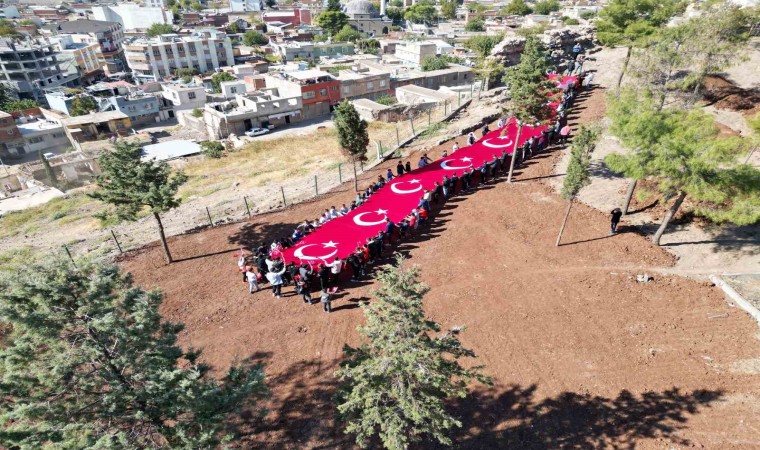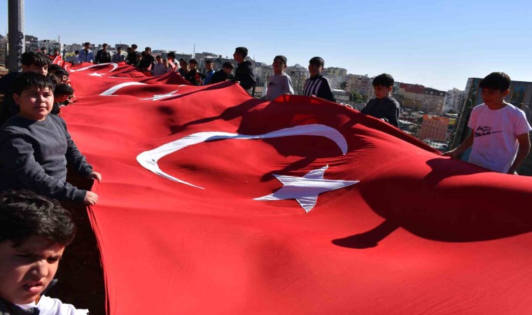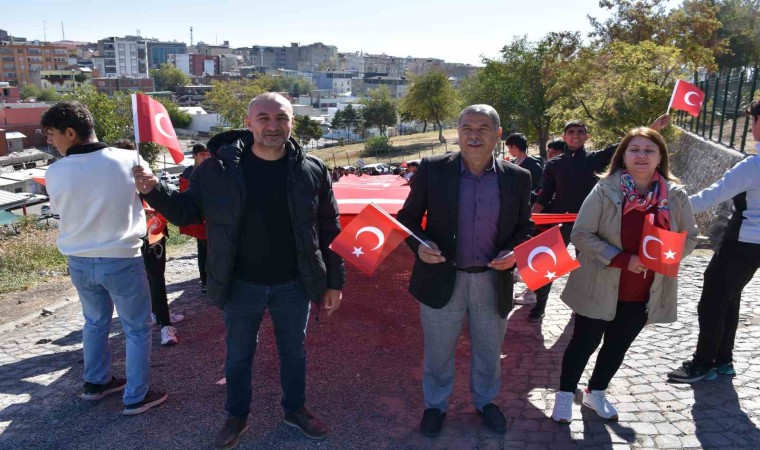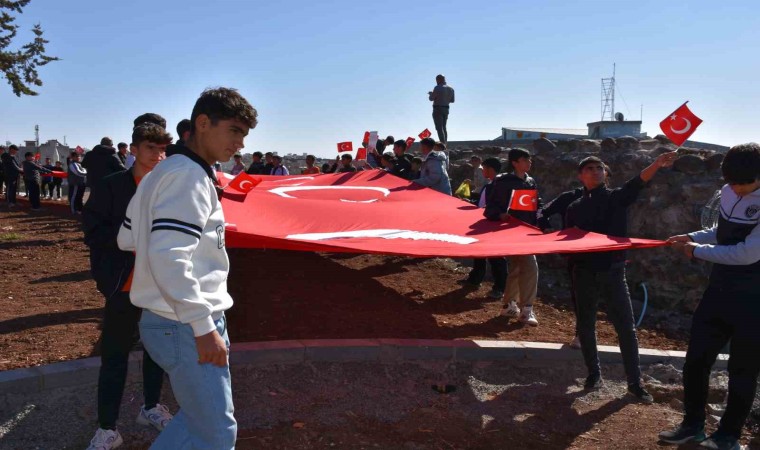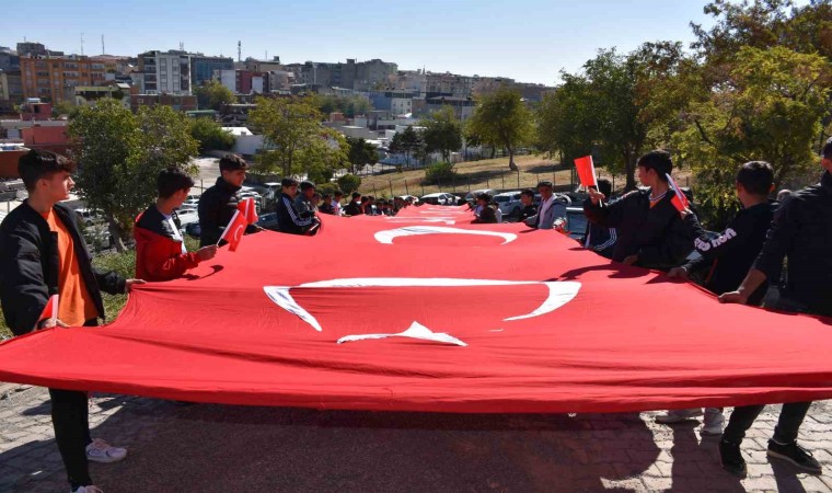 Şanlıurfa’nın Siverek ilçesinde Cumhuriyetin 101. yıl dönümü çeşitli etkinliklerle kutlanmaya devam ediyor. İlçede 101 öğrenci, 30 metrelik dev bayrağı omuzlarında taşıyarak Siverek Kalesi’ne çıktı ve ay yıldızlı bayrağı dalgalandırdı.