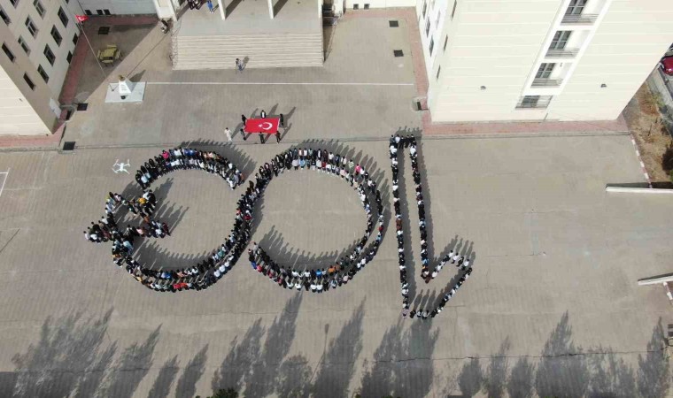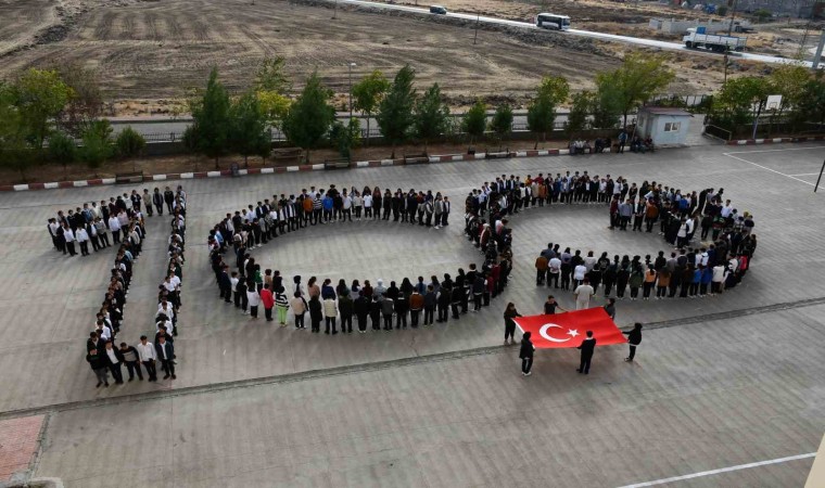 Şanlıurfa’nın Siverek ilçesinde 600 öğrenci, Cumhuriyetin 100. yılına özel bir koreografi hazırladı.