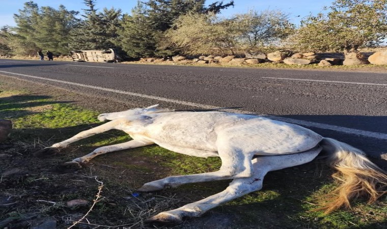 Siverek’te meydana gelen trafik kazasında bir otomobil yola aniden çıkan ata çarptı. Kazada at telef olurken araç kullanılamaz hale geldi.