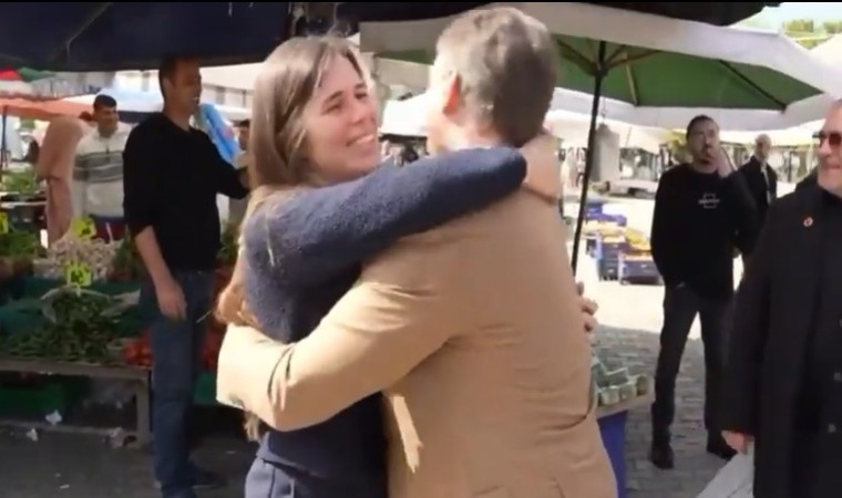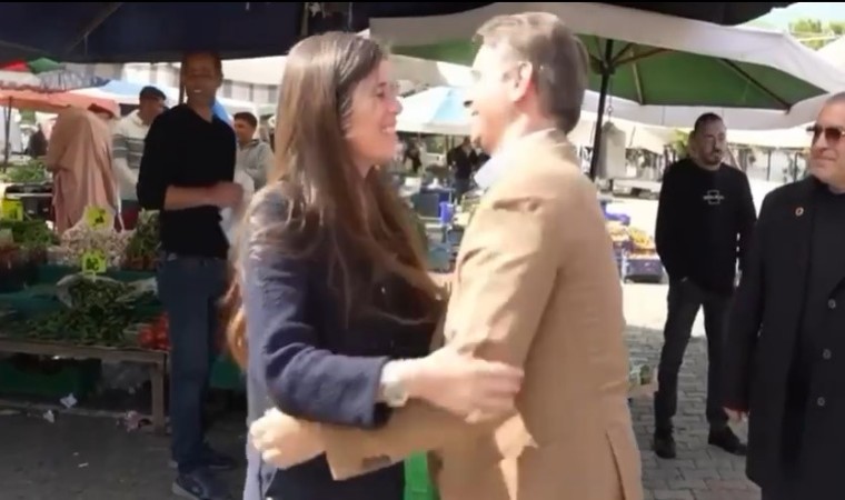 İzmir Çeşme’de adayların saha çalışmaları devam ederken, Ilıca pazarında karşılaşan CHP Belediye Başkan Adayı Lal Denizli ile MHP Belediye Başkan Adayı Esat Tanık, birbirlerine sarılarak başarı diledi.