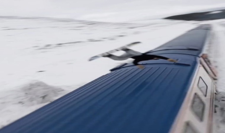 Ünlü snowboardcu Süleyman Atlı, Kars’ta hareket halindeki Doğu Ekspresi’nin üzerinden snowboardla atlayarak bir ilk imza attı.