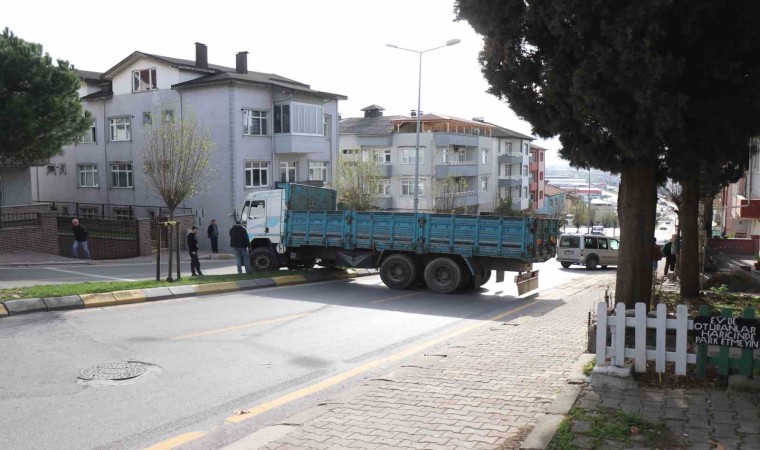 Sakarya’nın Erenler ilçesinde yokuş yukarı çıktığı esnada kamyon freninin boşaldığını anlayan şoförün refleksi daha büyük bir kazanın önüne geçti. Yokuş aşağıya kaymaya başlayan aracı refüje çıkartan şoför faciayı önledi.