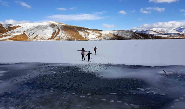 Bayburt’ta soğuk hava baraj göletlerini dondurdu.