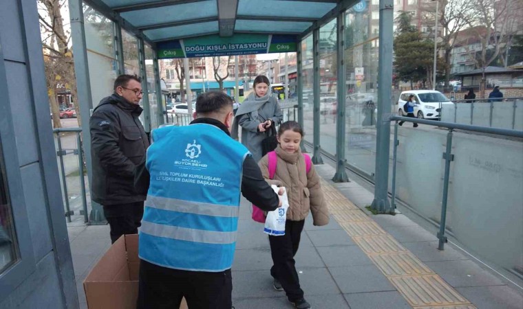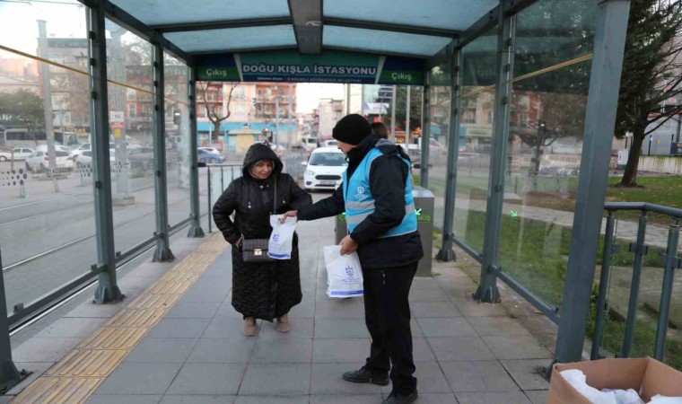 Kocaeli’de belediye ekipleri, soğuk havaya rağmen tramvay, otobüs durakları ve cami önlerinde vatandaşları bekleyerek, Regaib Kandili ve üç ayların başlangıcı dolayısıyla kandil simidi ikram etti.