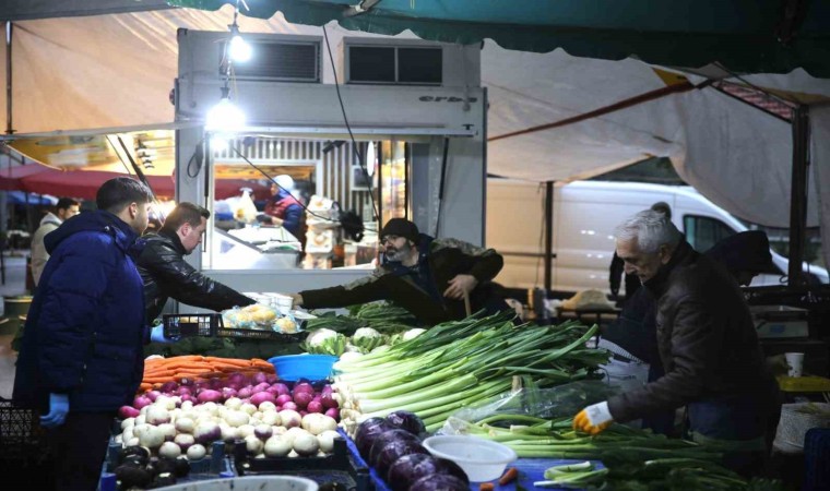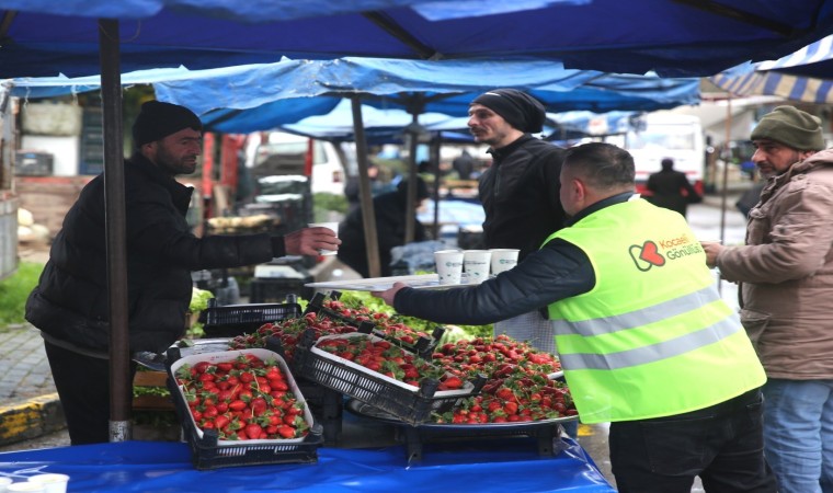 Kocaeli Büyükşehir Belediyesi, Gölcük Kavaklı Çarşamba Pazarı’nda tezgah açan esnafa soğuk kış gününde çorba ikramında bulundu.