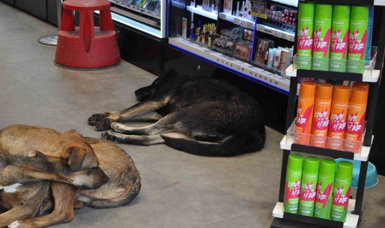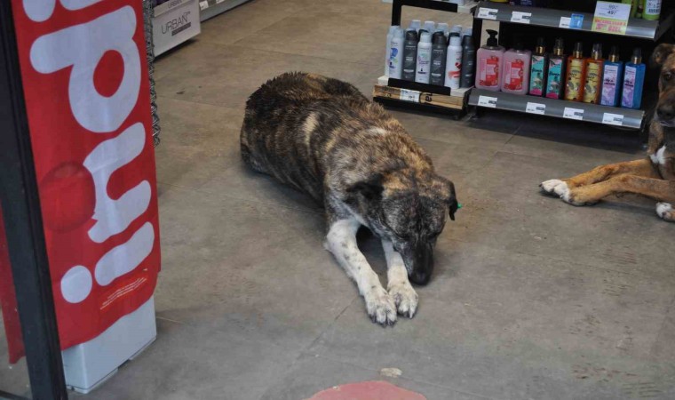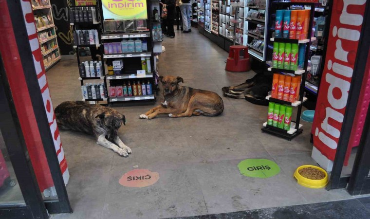 Eskişehir esnafı hava sıcaklıklarının düşmesiyle birlikte üşüyerek işletmelerine sığınmak isteyen köpeklere kapısını açtı.
