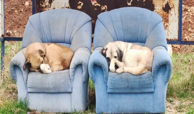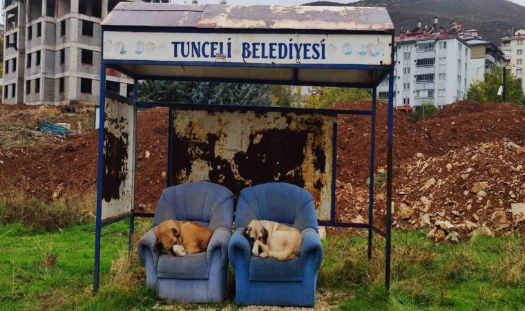 Merkez Cumhuriyet Mahallesi’nde soğuktan korunmak isteyen iki sokak köpeği, çareyi belediyeye ait otobüs durağına sığınmakta buldu. Sokak köpekleri için çevredeki vatandaşlar tarafından otobüs durağına koltuk konulurken köpeklerin koltuklarda uyudukları anlar cep telefonu kamerasıyla kayıt altına alındı.