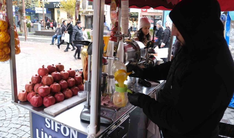 Eskişehir’de soğuyan havaların gelmesiyle birlikte vatandaş bazı hastalıklardan korunmak için çareyi limon, portakal ve nar suyu içmekte buldu.