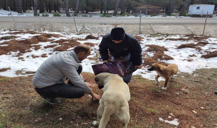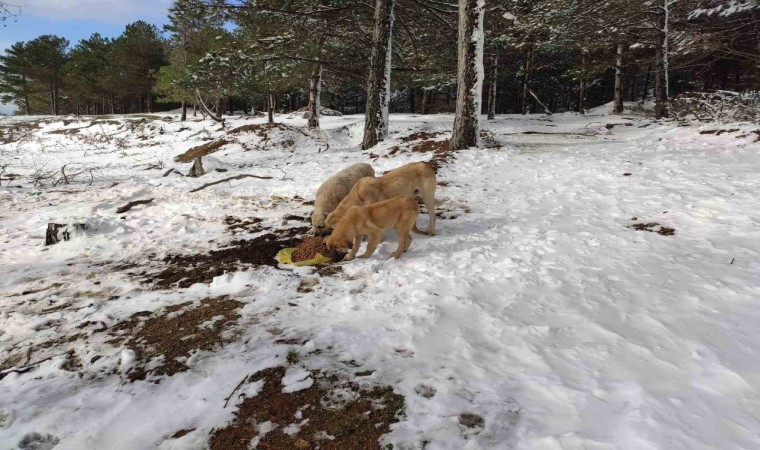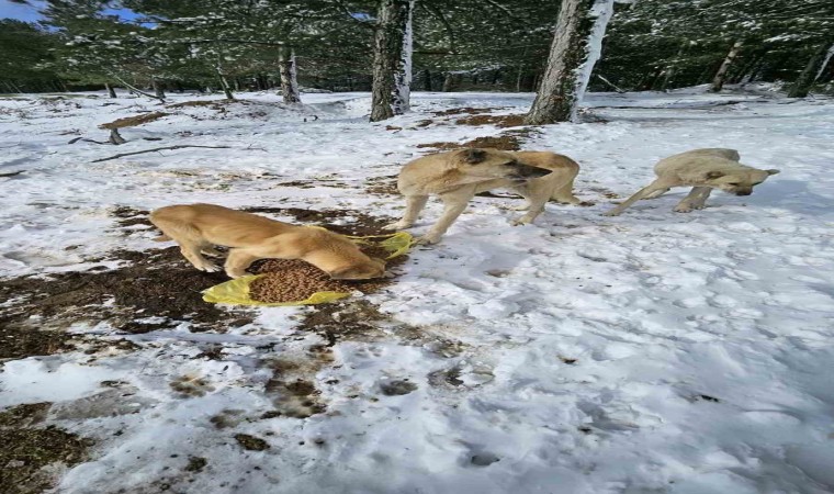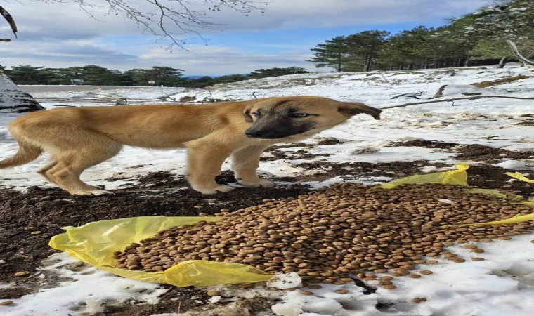 Edremit Belediyesi tarafından Kazdağları’nda kar yağışı sonrasında sokak hayvanları için yem desteği bırakıldı