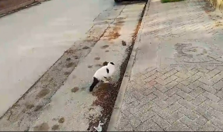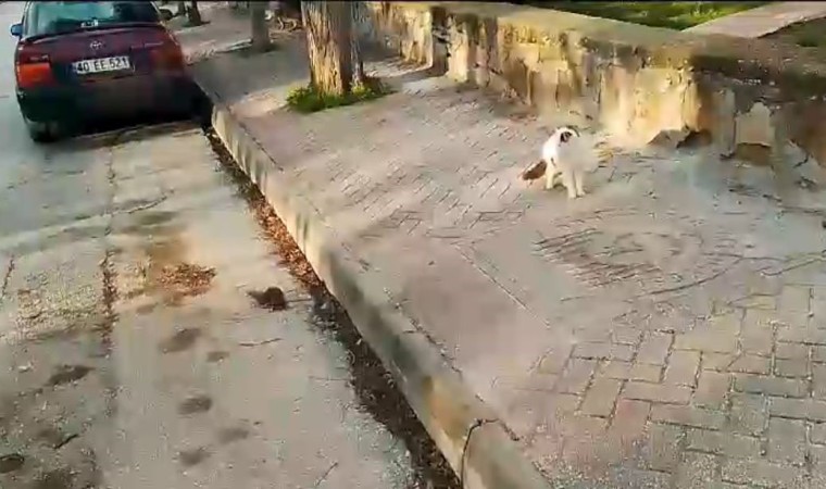 Eskişehir’de insanlar tarafından hazır mama ve yiyeceğe alıştırıldığı düşünülen bir kedi, sokakta karşısına çıkan lağım faresini dikkate bile almadı.
