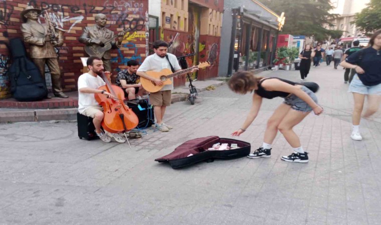 Eskişehir’de havaların ısınmasıyla sokak müzisyenleri cadde ve sokaklarda daha fazla konser vermeye başladı.