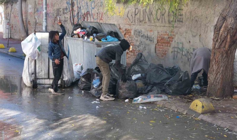 Eskişehir’de ara sokaklarda karton ve plastik toplayan minik çocuklar, görenlerin yüreğini sızlattı.