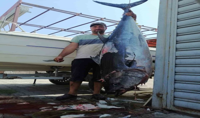 Aydın’ın Söke ilçesinde amatör su ürünleri avcılığı yapan bir balıkçı, deniz sahasında mavi yüzgeçli orkinos balığı yakaladı. Yakalanan dev balık, İlçe Tarım ve Orman Müdürlüğü Su Ürünleri ekipleri tarafından kontrol edilerek kayıt altına alındı.