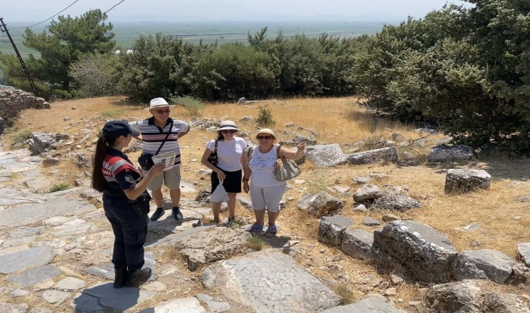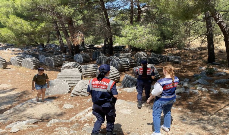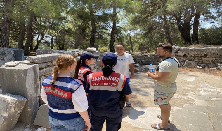 Aydın İl Jandarma Komutanlığı Çevre, Doğa ve Hayvanları Koruma Tim Komutanlığı, Aile İçi Şiddetle Mücadele ve Çocuk Kısım Amirliğince Söke İlçesi sorumluluk sahasında bulunan UNESCO tarafından korunan gelecek nesillere aktarılacak kültür tarih miraslardan Doğanbey Eski Rum Köyü ve Pirene Antik Kentini ziyarete gelen yerli ve yabancı turistlere geçtiğimiz yıllarda yaşanan yangın felaketlerinin tekrarının yaşanmaması adına farkındalık oluşturması için; orman yangınlarının önlenmesi, ormanlık alanlar ile mesire alanlarında uyulması gereken kurallar hakkında bilgilendirmelerde bulunuldu. Vatandaşlara uyarıcı broşür dağıtımı yapan ekipler, sokak hayvanlarına yönelik besleme faaliyeti ve kültür tabiat varlıklılarının korunması, doğa sevgisi’ farkındalığı oluşturma maksatlı vatandaşlarla bilgilendirici sohbetler edilerek bölgede bulunan sit alanlarında denetim ve kontrol faaliyeti gerçekleştirdi.