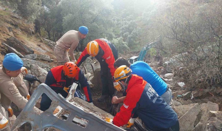 3 kişinin içinde etrafa çarparak sürüklendiği ve kayaların arasına sıkışan beyaz otomobil ile çevresi didik didik arandı. Ekipler ilk olarak o noktaya yoğunlaştı, araç yapılan çalışmayla yerinden zorlukla çıkarıldı ancak Alptekin’in izine rastlanmadı.